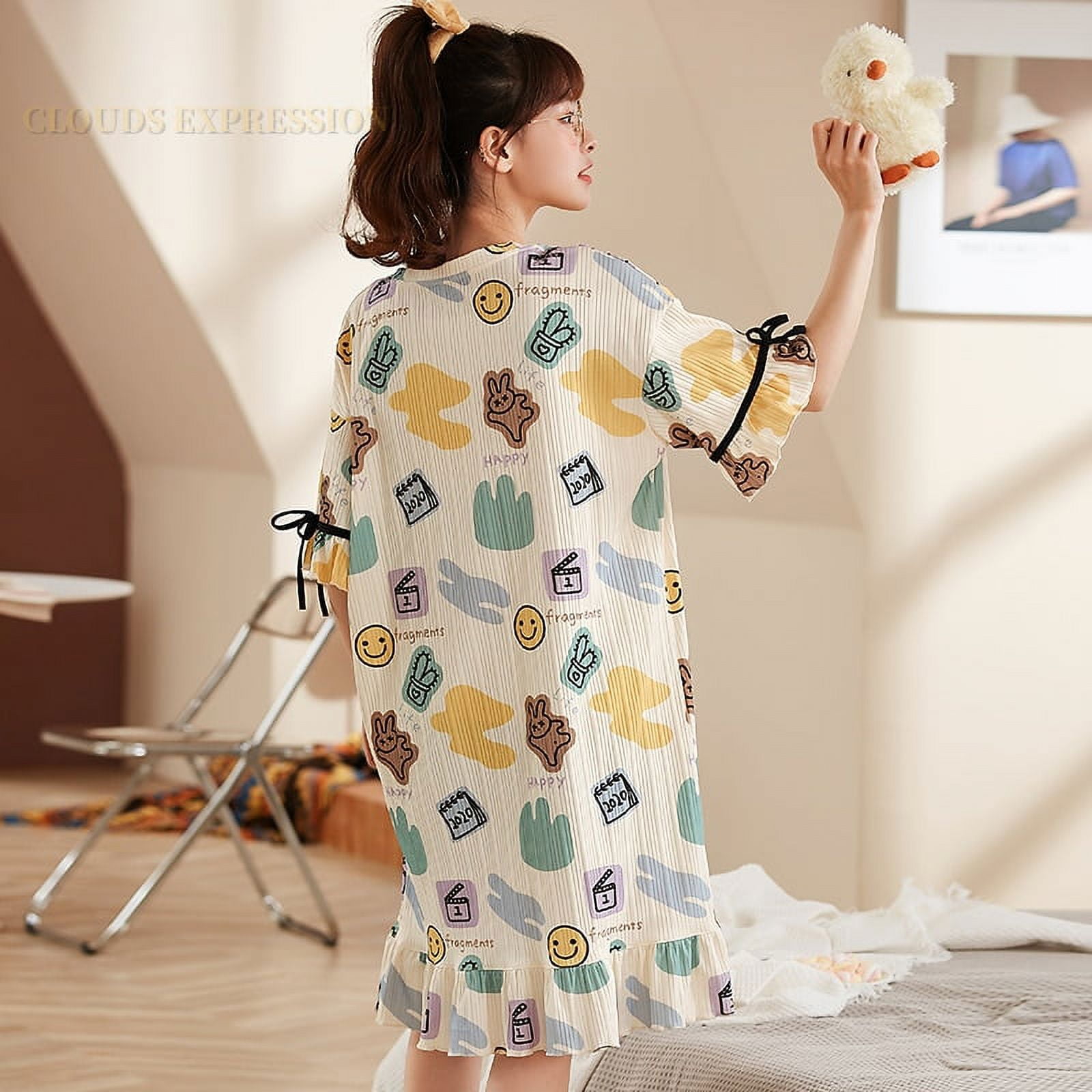 Qwzndzgr Summer M 3xl Knitted Cotton Night Dress Cartoon Print Womens Nightgowns Sleepshirts Girls Nightgowns Kawaii Homewear Nightdress Walmart Com